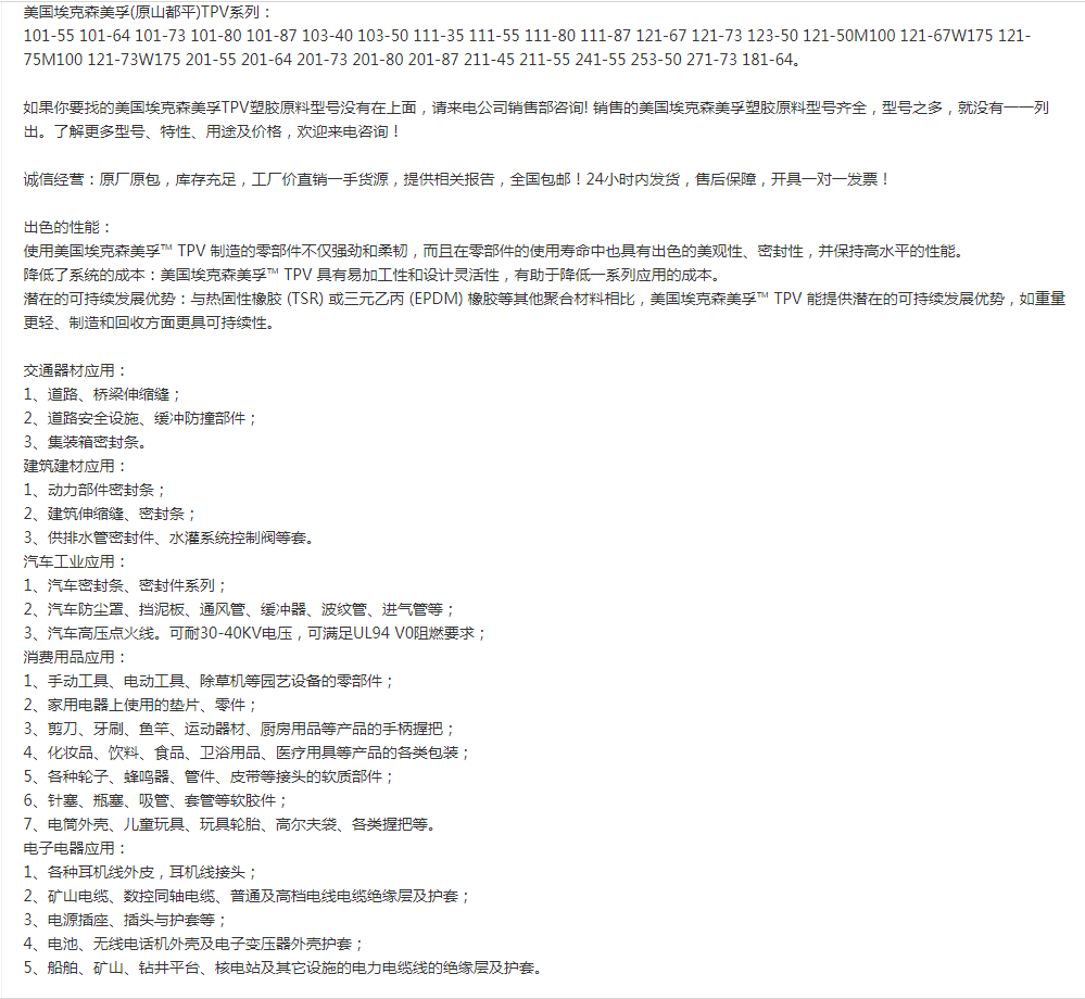 埃克森美孚TPV 8211-55B100 埃克森美孚TPV 全系列